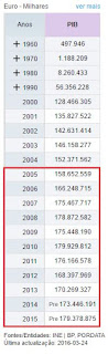 Comecemos por olhar para a evolução do PIB de 2005 a 2015
